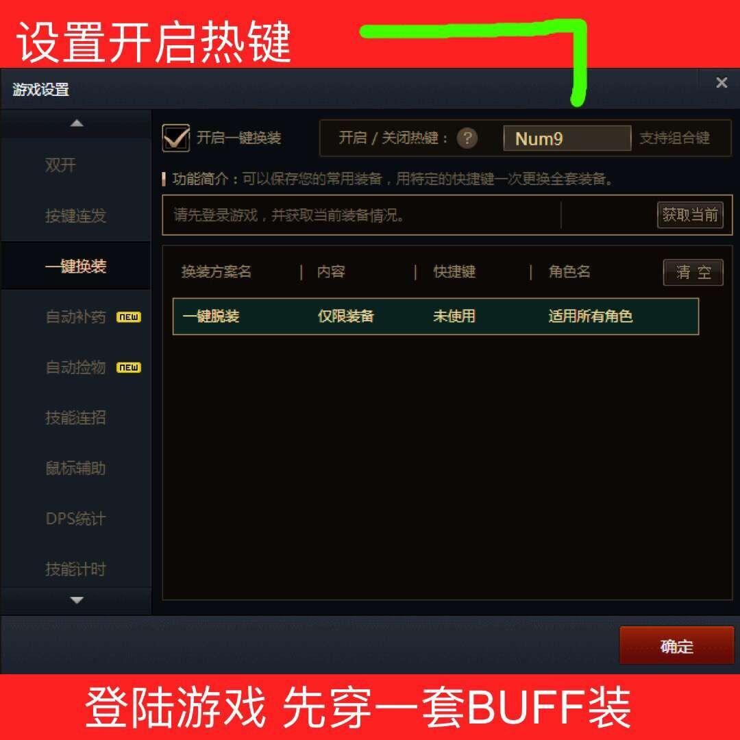 玩DNF的宝宝们,换装后上完BUFF再输出会增加很多很多伤害,有时候技能差一点点就会关系到你能不能秒怪。就比如30级的光兵就比20级的光兵技能伤害提升很多。下面让我们学习一下如何一键换装