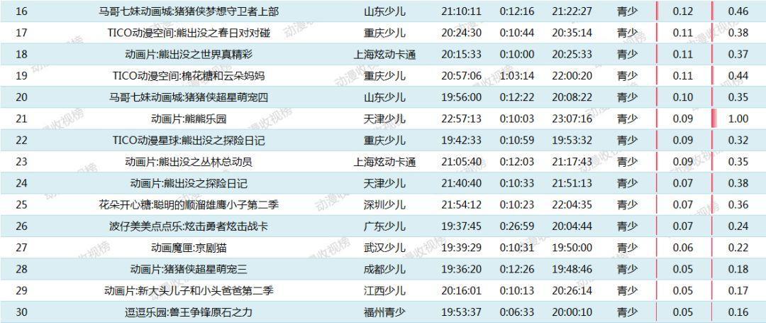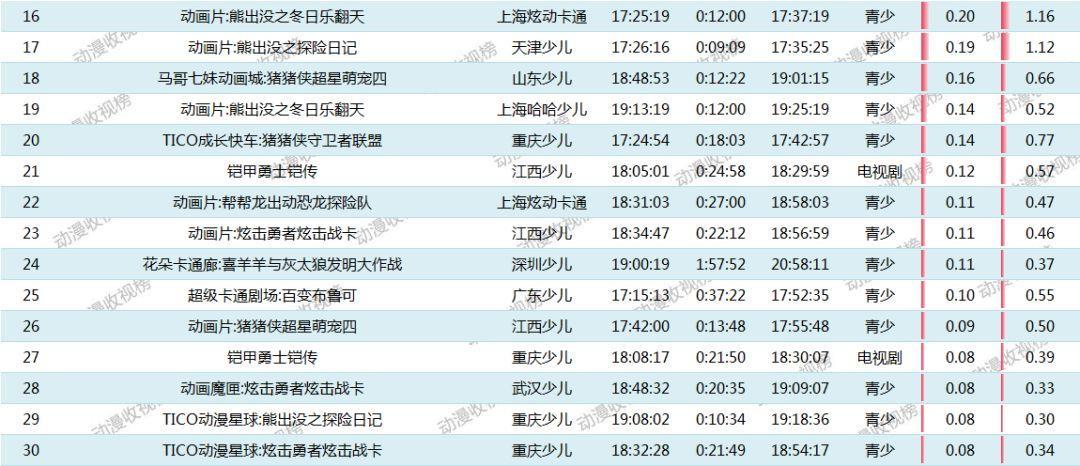 本文数据为动漫收视榜独家,转载或截图使用请注明出处