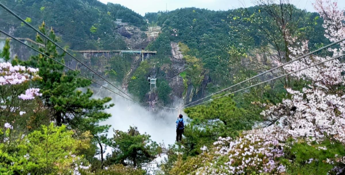 位于悬崖峭壁之上的青云栈道,全长约3100米盘旋于峭壁之上。曲曲弯弯,忽高忽低,蔚为壮观,走在栈道上脚下便是万丈深渊,十分刺激有趣。