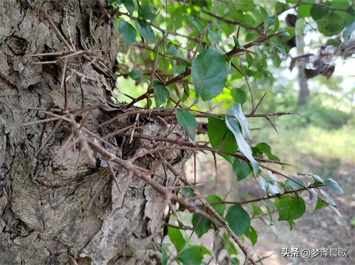 柞木树干上生长着长长的尖刺,看着就让人生畏,大人小孩都不敢惹它,牛羊动物也不敢碰它。