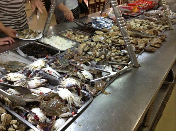 海鲜自助您一定要选贵的海鲜来吃,如螃蟹、皮皮虾,不要吃过多的贝类,因为你会发现您吃的蚬子市场上卖10元钱3斤。