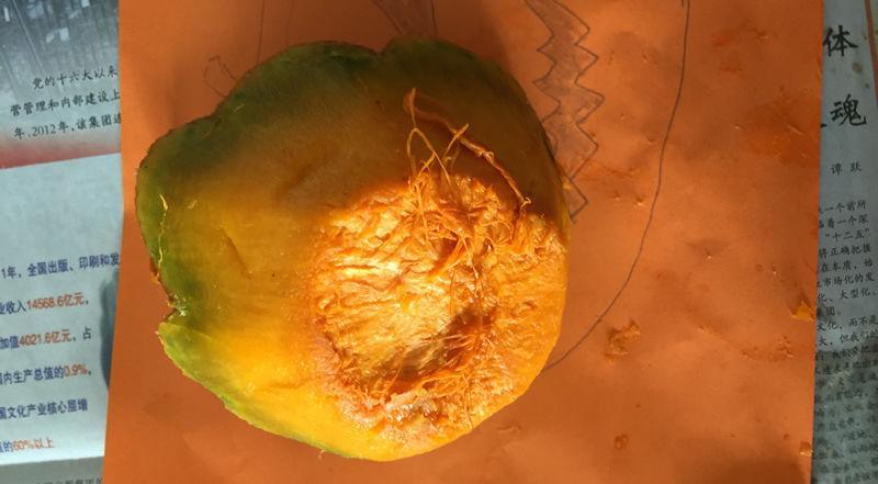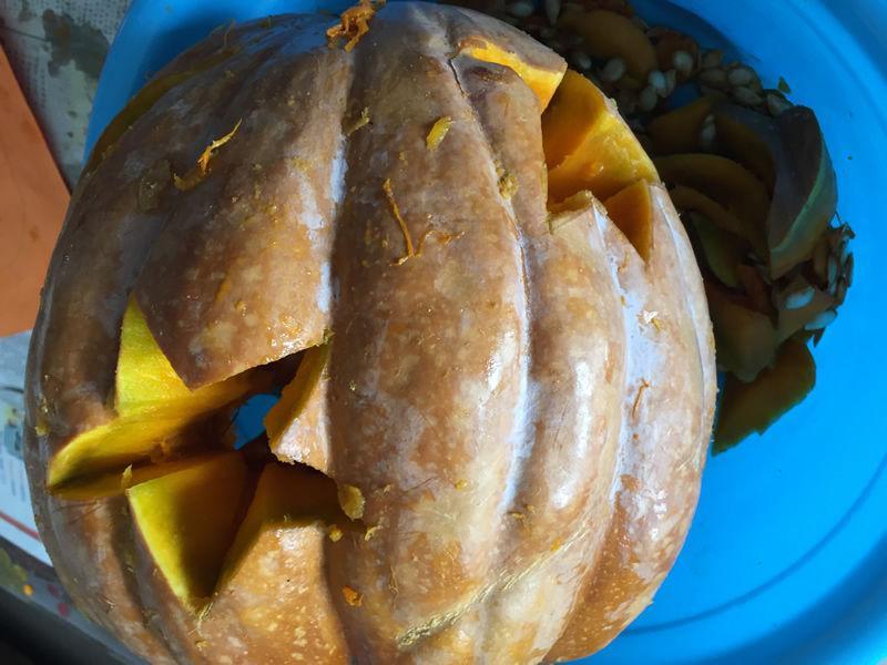 (3)清洗:将准备好的南瓜洗净晾干,待雕刻。
