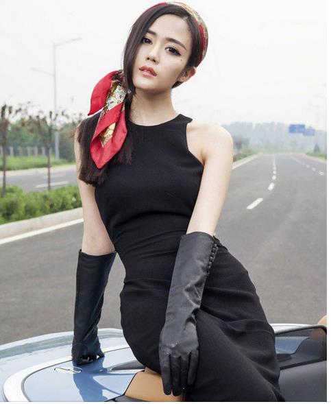 黑色紧身连衣裙搭配一双黑色手套,标志性的头巾,全身透露出十足的性感!