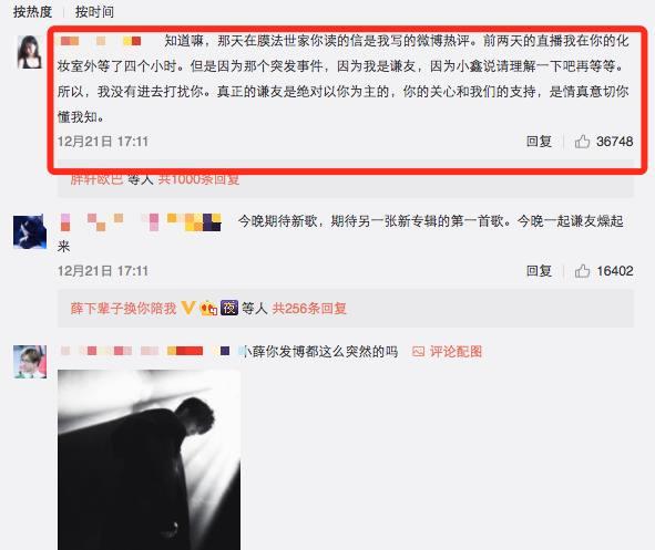 当然即使如此还是有很多粉丝为他疯狂打call:文章婚内出轨一点事没有,薛之谦做错什么了,好多事都是道听途说 人云亦云 保持初心 老薛 加油然后,他干的事和你有什么关系,网络暴力?如果是自由言论,你被骂不也是正常?基本也就这样了,没人给宣传,没有曝光度,很快就会被后浪拍到沙滩