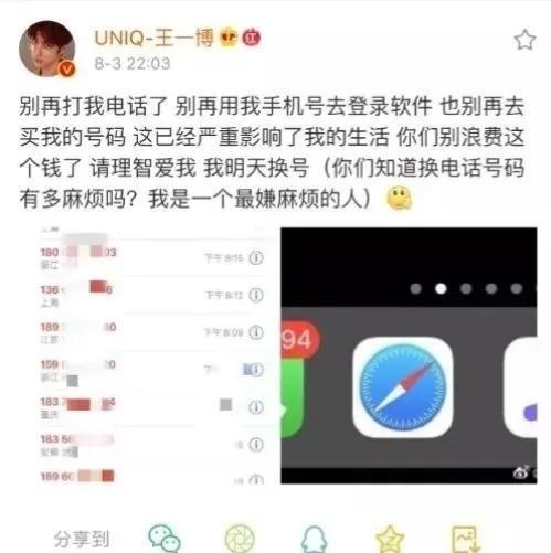 王一博因电话号码泄露,遭遇私生饭天天骚扰。