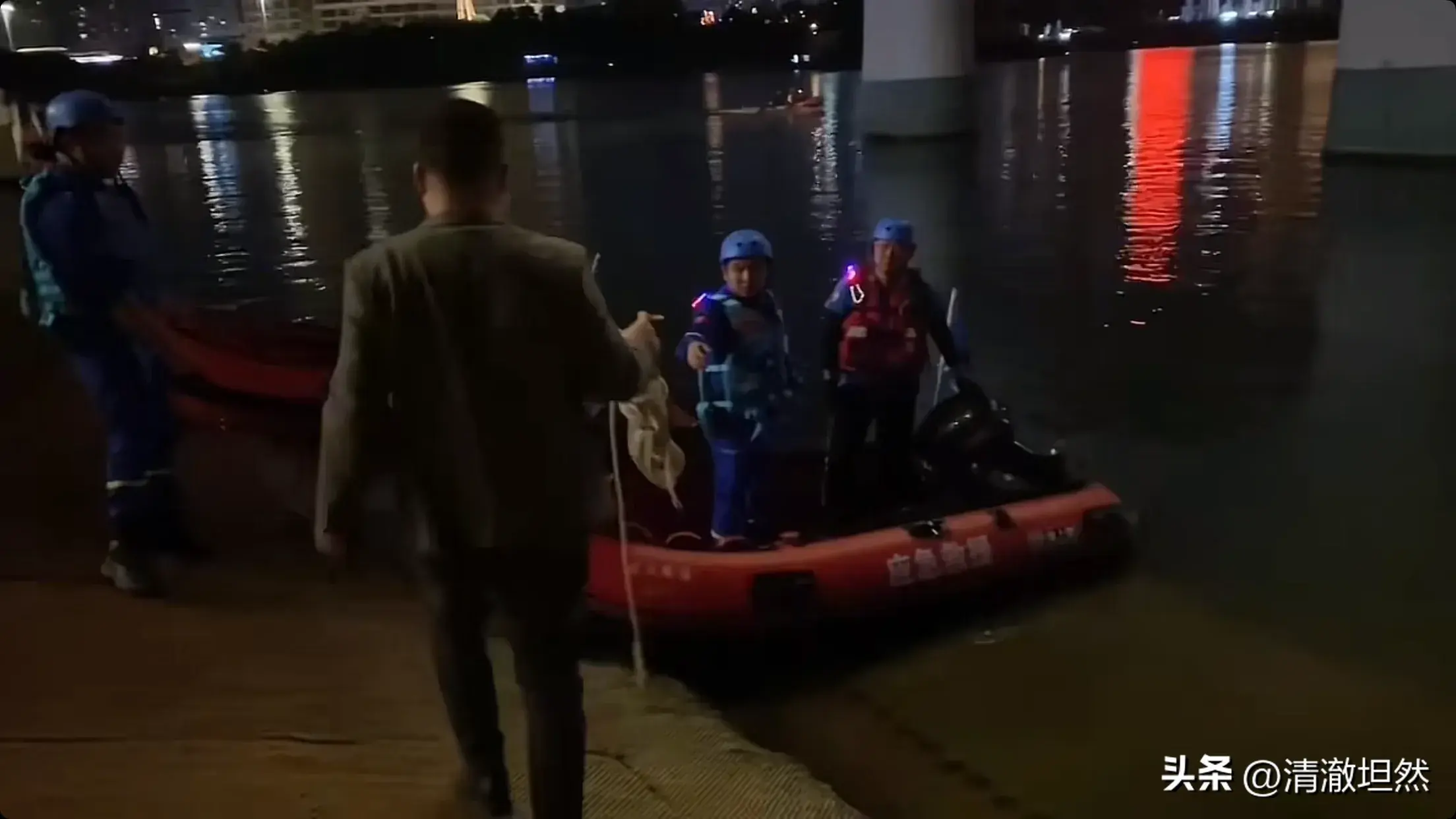 消防人员在接到报警之后,也迅速赶往了现场,但是轻生者早已在河面上没有了踪迹,无奈只能拿着相关设备,水下作业,潜水打捞,寻找了。