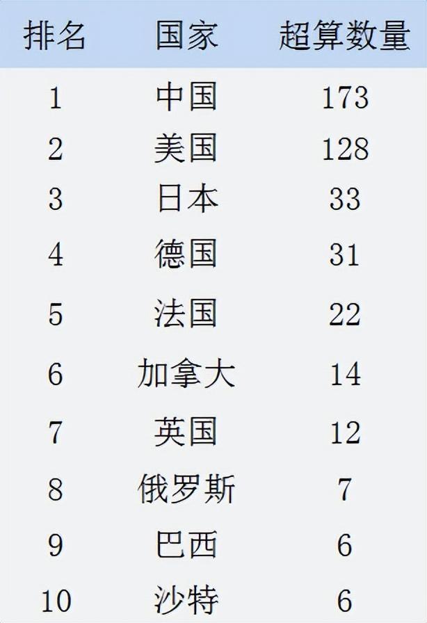 图6. 超算数量排名前十的国家