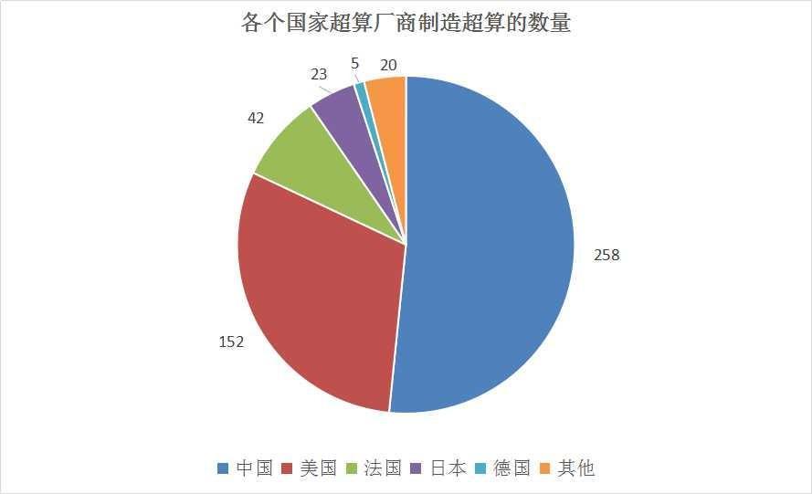 这种担忧有一定道理,因为从数据上看我们的超算确实比美国落后一些,但我们也有自己的优势。在本次全球超算500强名单中,美国的超算不仅夺取了第一名的位置,而且在总算力上也遥遥领先,这里的总算力就是把各国入围500强榜单的超算的算力相加所得,从图3中可以看到,美国的总算力是2085.02 PFlop/s,中国是530.21 PFlop/s,美国几乎达到中国总算力的4倍。从排名和算力上来看,中国确实是落后于美国的,但还有一项数据中国却是领先全球的,就是中国超算厂商的生产超算的数量,在本次榜单中,由中国厂商独立制造的超算占了258台,超过了榜单的一半,而美国只有152台。而在这258台超算中,有173台是给中国大陆机构制造的,其余85台是给中国大陆以外的地区制造的,这个数量差不多占了三分之一,也就是说中国的超算厂商已经远走海外,给世界各个国家和地区生产制造超算,充分证明了中国厂商目前的超算实力已经得到了全世界的认可。
