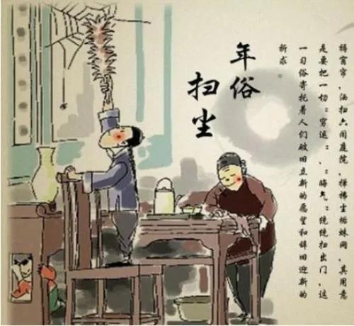 扫尘在北方称为扫房,但在南方布叫掸尘。总之,这天一定要把屋里院内,犄角旮旯,彻底打扫,使之焕然一新。