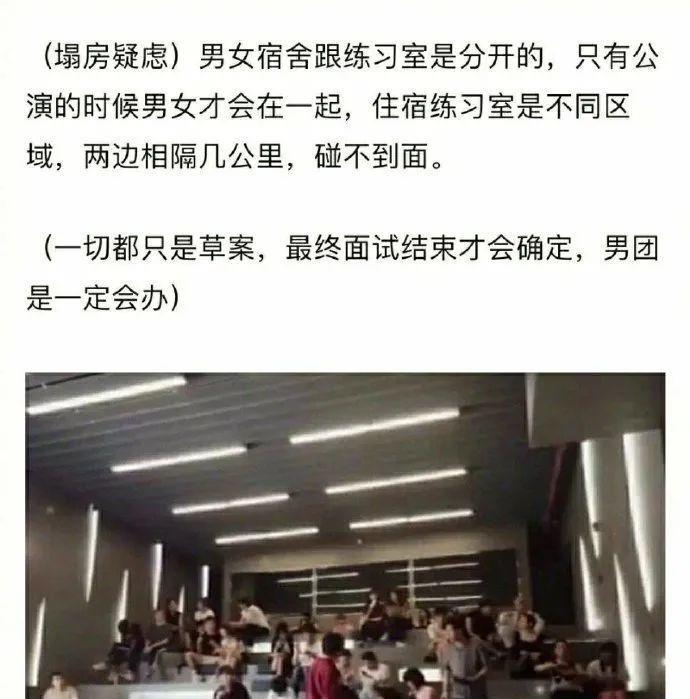 至于粉丝们最担心的男女练习生住得太近、接触太多的问题,爆料者则表示,男女宿舍和练习生是分开的,且两处相隔几公里,碰不到面,不必太忧虑。