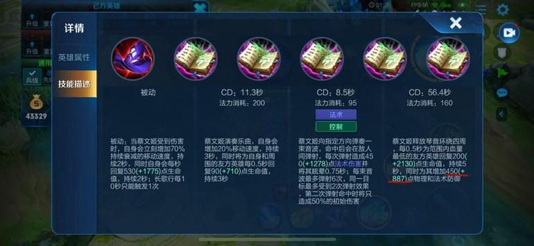 当然,如果考虑到铭文带的是10圣人(+5.3法攻)、10轮回(+2.4法攻)以及10献祭(+2.4法攻),蔡文姬大招的最终加成就为450+915。