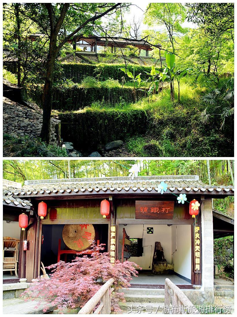 景点的布局巧妙地利用了原有地形,建筑精致、风格古雅,参差错落的屋顶,朴质素雅的形态,青砖黛瓦的明快色调,四周有青山绿水环抱,处处透露出一种和谐的美。