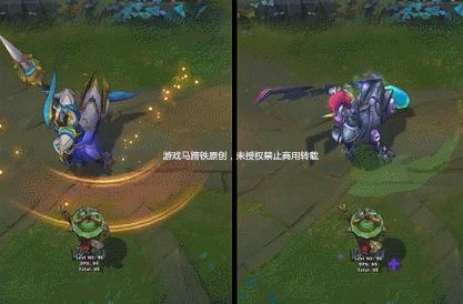 一个摇滚弹奏,一个绕圈屈膝俯首。这个动作和皮肤本身的主题也有关,电玩人马毕竟他突出的效果就是玩乐,而0式则是比较偏骑士风。