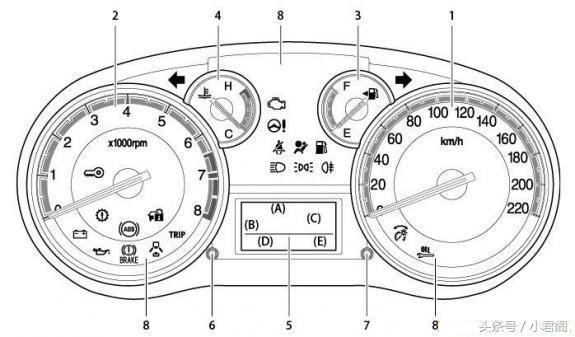 1)接通点火开关,组合仪表信息显示屏(5)右下E区将显示5秒钟的“OIL”。