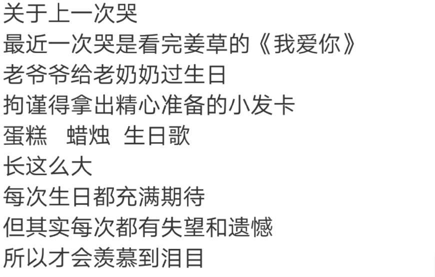 姜草的《我爱你》如果哪一天有腾讯会员了一定要去补电影版比看完后来的我们更加难过 同样的问题 依旧不明白为什么如此相爱的人却不能一起万石老爷爷真的很想念很想念奶奶吧宋美丽奶奶也是很想念很想念爷爷吧或许这种想念比看着对方离去时不能接受的痛苦要幸福得多都是因为太爱了吧 “是喜丧啊”“不要把我们掰开”