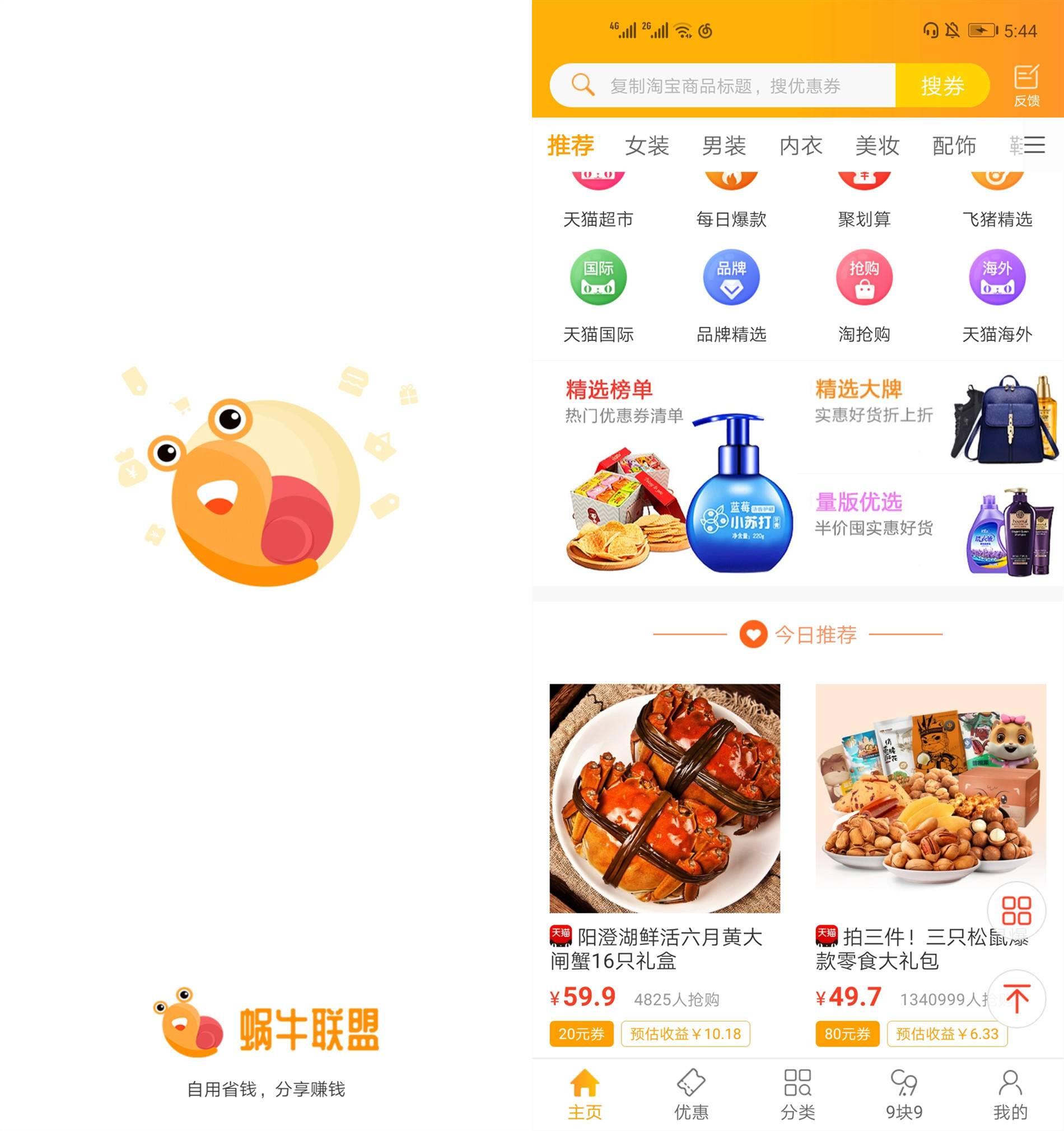 日常少不了购物少不了淘宝,蜗牛联盟这个APP呢还可以查询到淘宝、天猫内的优惠券,已经购买产品有返利。其实淘宝内部90%的产品是有返利的。而其中有80%是有优惠券的呢~