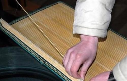 从旧竹席上拆下一根长长的竹签,用小刀休整一下