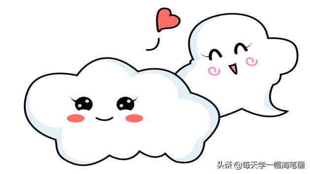 4、最后给云朵加上小表情,再画上一颗小心心,这样云朵就画好了!