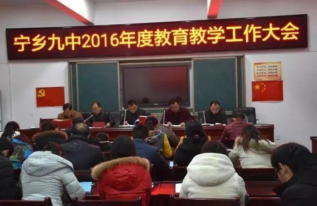 在学校刚刚举行的2016年度教育教学工作大会上,宁乡九中响亮地喊出了“强化质量意识,建设特色学校,打造最美乡村高中”的口号,吹响了奋战2017年高考的号角。