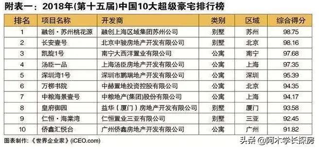 因为高品质、高质量、价格贵、楼盘知名度、建筑设计等原因,还连续2年获得“中国10大豪宅”之一的称号