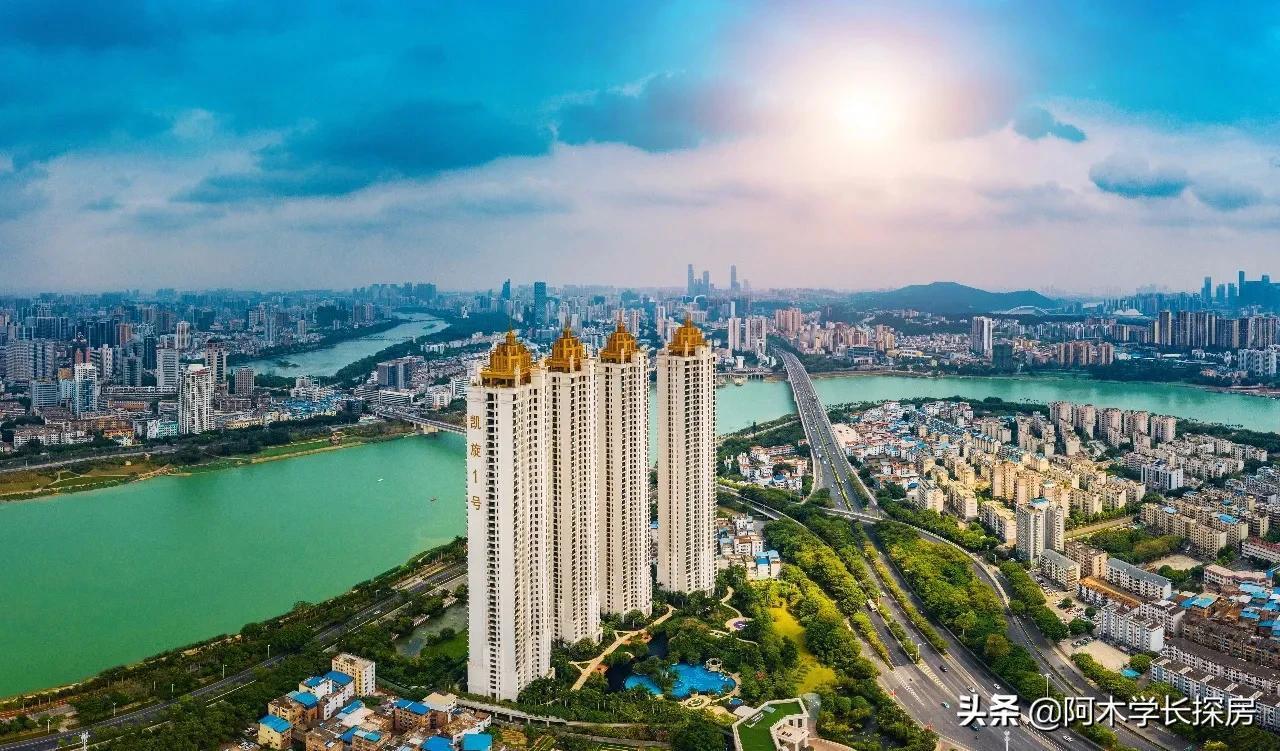 我们今天就来聊一聊它的故事,凯旋1号由南宁大西洋置业有限公司开发,项目位于广西南宁市江南区白沙大道2号(原南宁麻纺厂和江南造船厂地)2001年拿下2个地块,总面积约200多亩,分2期开发,目前我们看到的(凯旋1号)为1期,一共4栋46-47层的超高层组合。