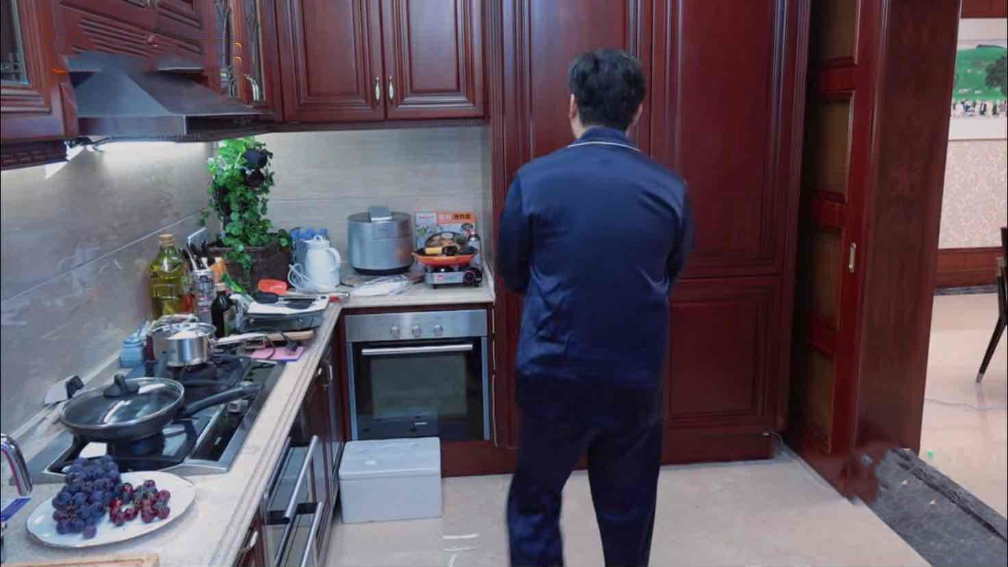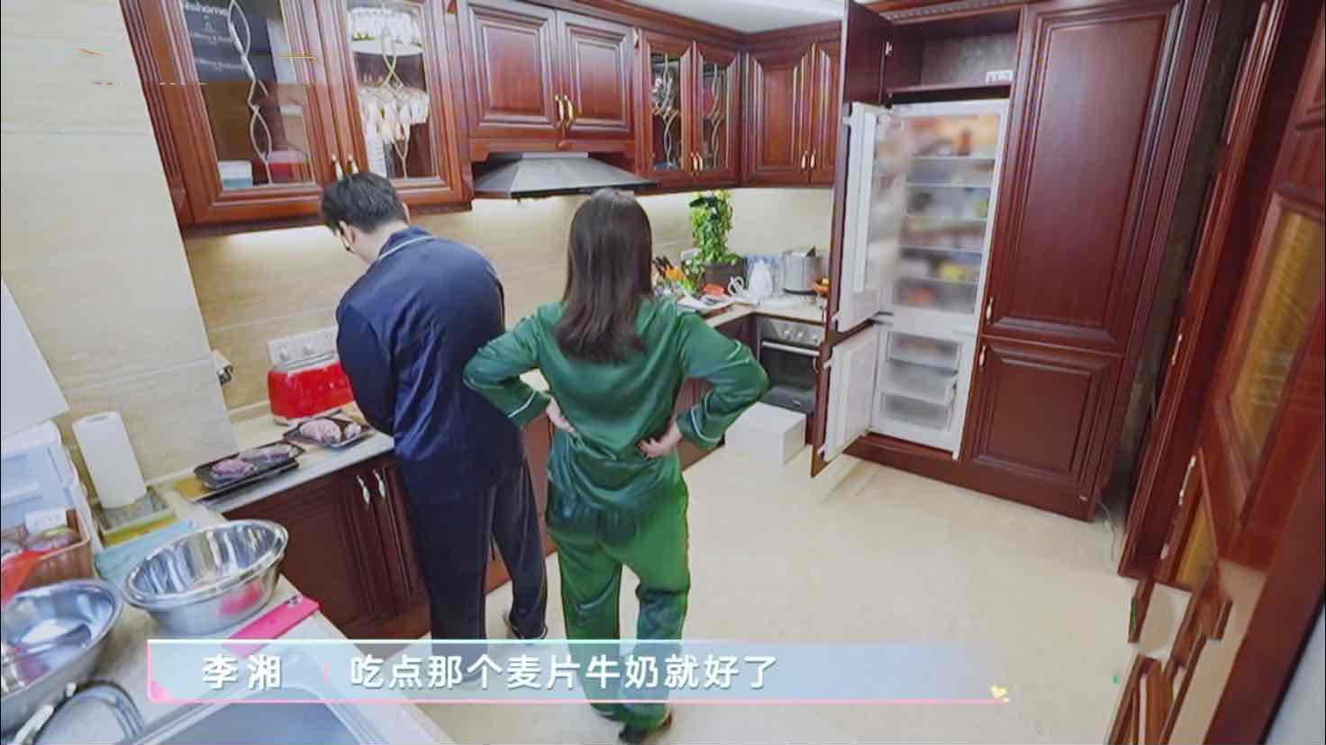 逛到厨房,你可能会觉得还挺接地气,相比小康家庭也就大了4-5㎡,其实差距不止这一点点,首先冰箱的设计,嵌入在橱柜中,外面用柜门遮挡,最近明星家好像很流行这种冰箱的安装方式。