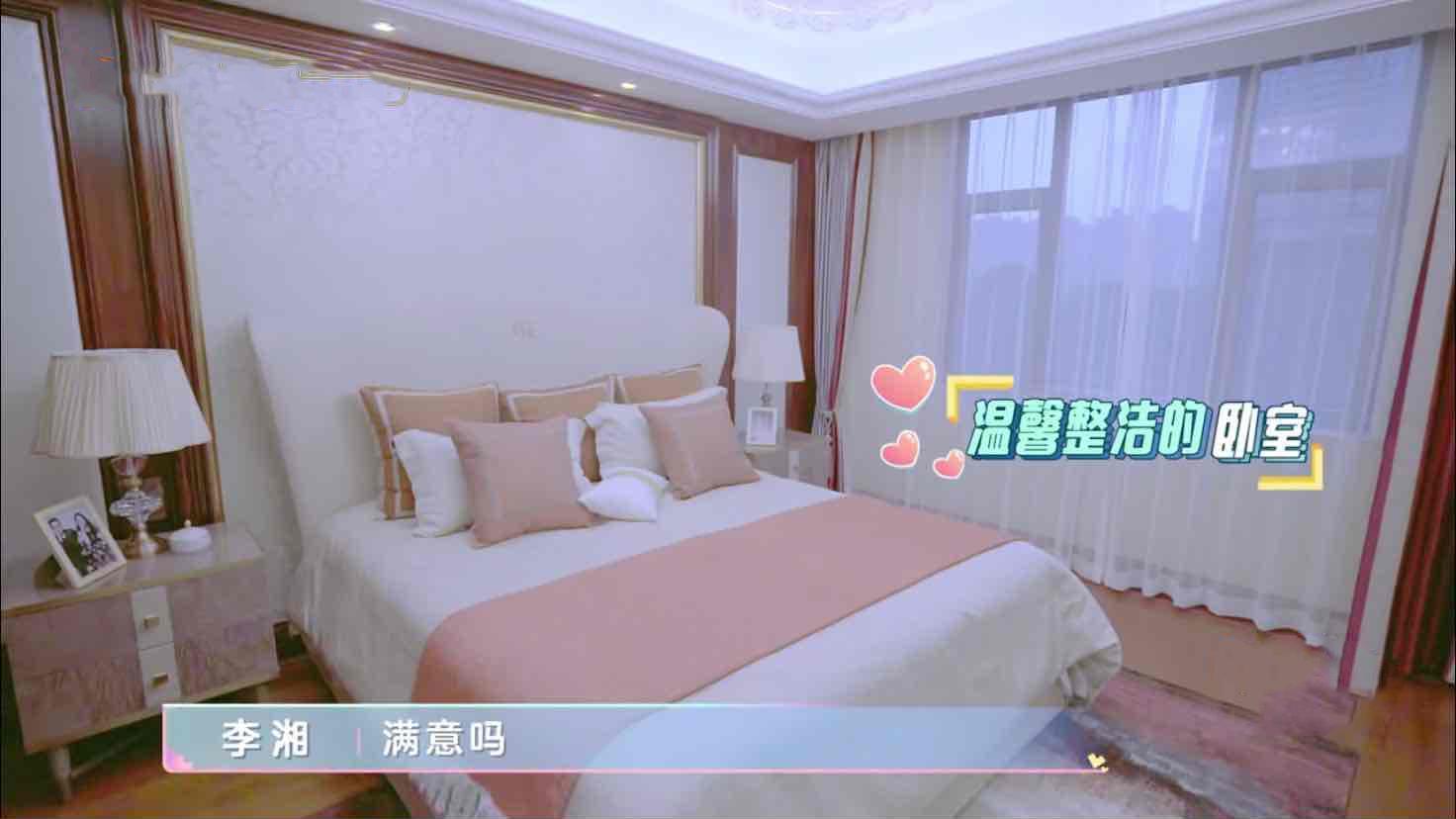 卧室布置温馨整洁跟酒店一样,只见床不见衣柜,估计空间太大,一个镜头扫不到。