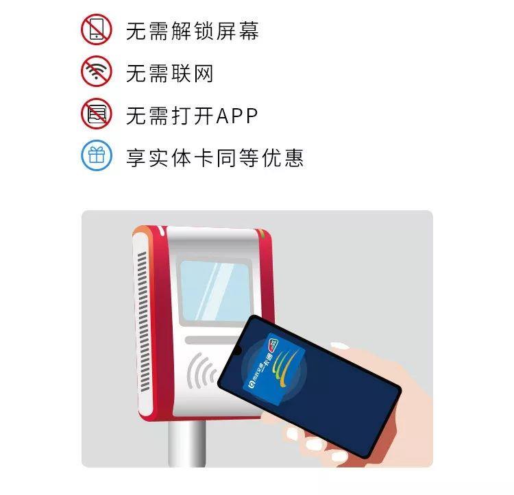 使用方法:在乘坐公交或地铁时,只需将手机靠近公交刷卡机或地铁闸机即可完成极速便捷的支付,享受安全、快捷的无卡支付体验。同时可享受“绿城通”普通优惠卡相应折扣(公交8折、地铁9.5折)。