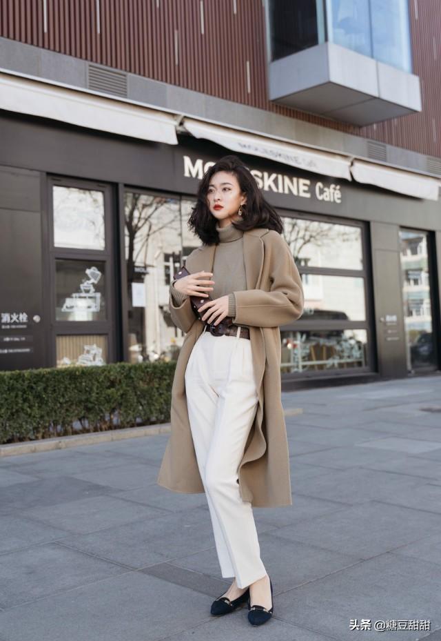 应该没有姐妹不知道深色显瘦这个小方法吧?同样,我们也可以用上深下浅的配色方式来修饰肩宽。选择卡其色、驼色、棕色或者黑色等深色系的大衣搭配浅色下装,大衣也能穿得很好看。