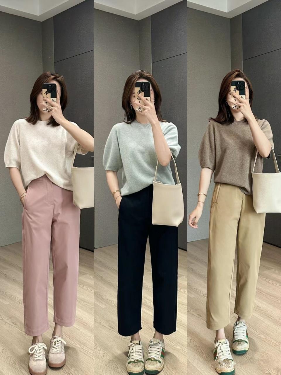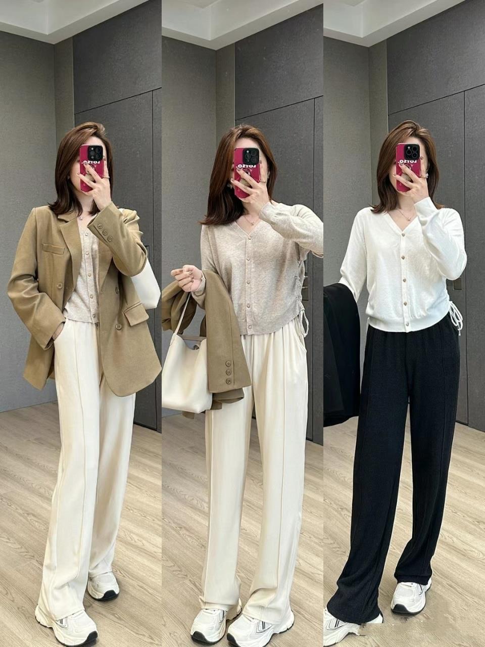 下装和博主一样选择低饱和度的豆沙粉、纯黑色或者卡其色都是OK的。