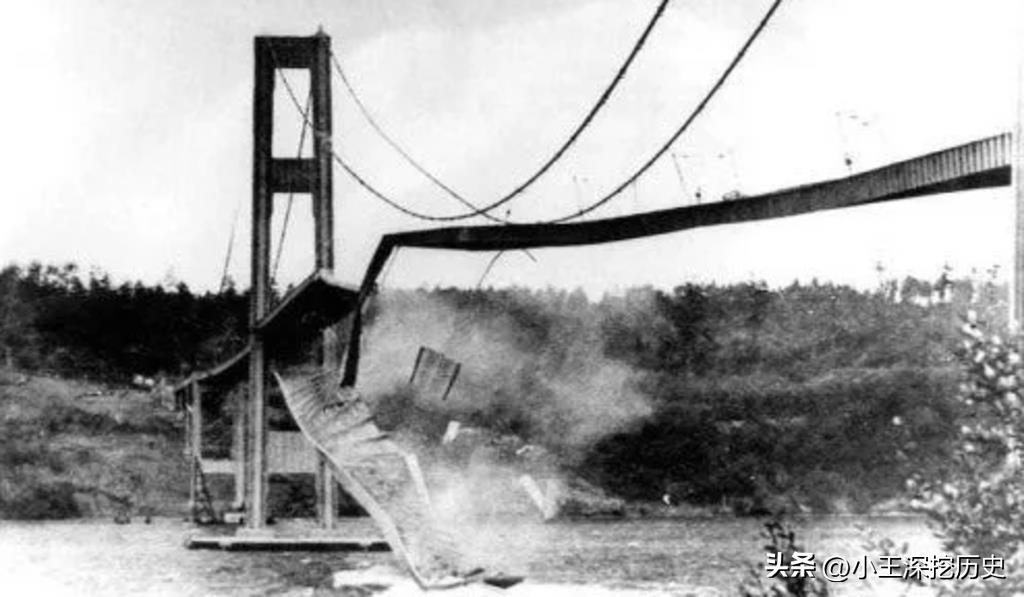 在众人紧张地目光中,塔科马大桥好像已经认命,任由狂风的折腾,随着摆动的幅度越来越大,只听到一声巨响,塔科马大桥直接坍塌了。这座耗资千万连接两岸的桥梁,仅仅只有四个月的使用寿命。
