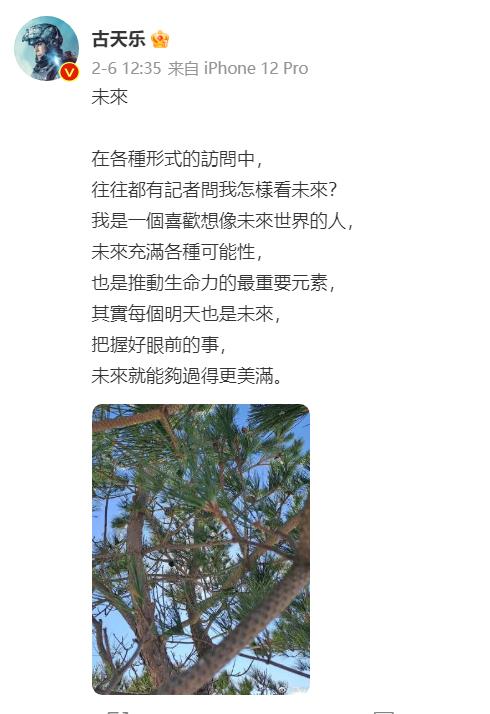 2023年2月6日,古天乐通过社交平台发布了如下文字:
