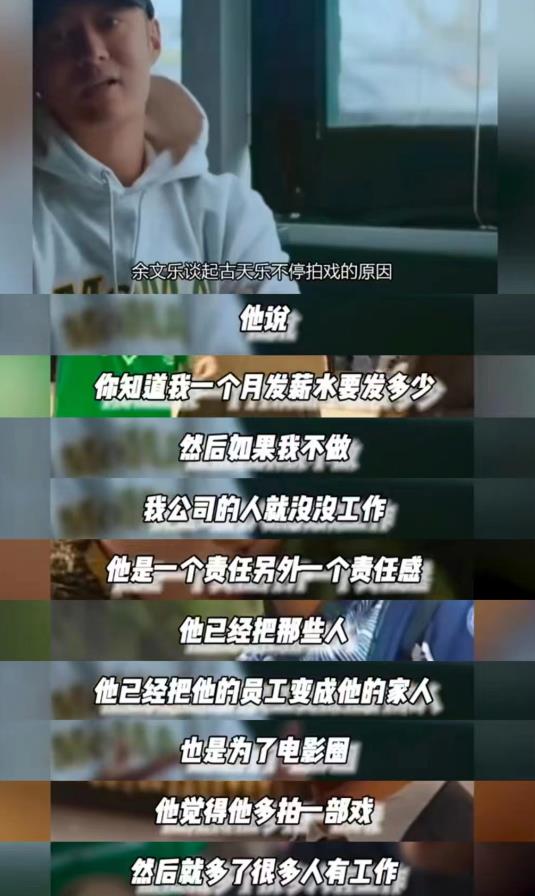 他说,古天乐已经把自己的员工当作自己的家人,也是为了电影圈,他觉得自己多拍戏就会多一些人有工作。