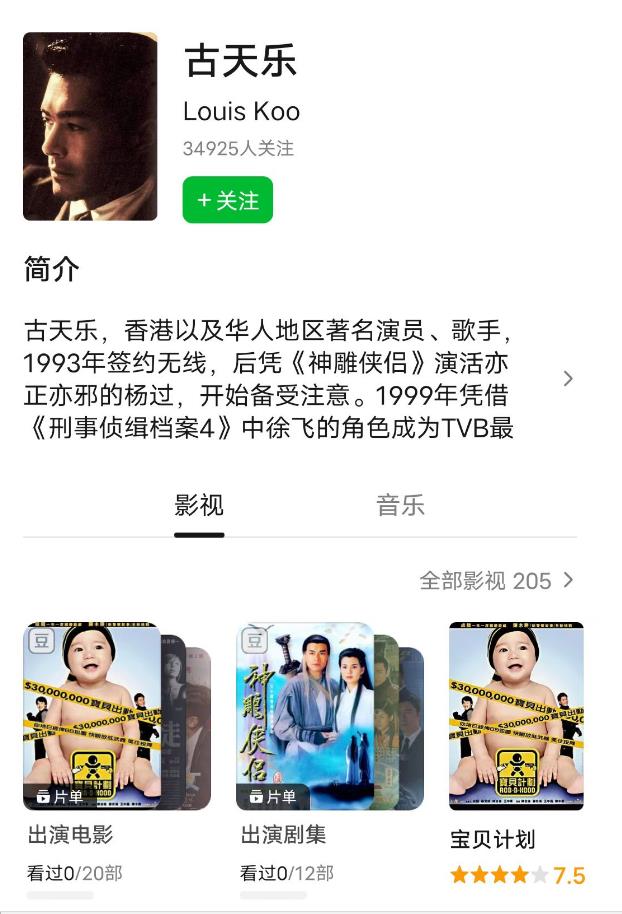 这些年古天乐参演的影视,竟然有205部之多。