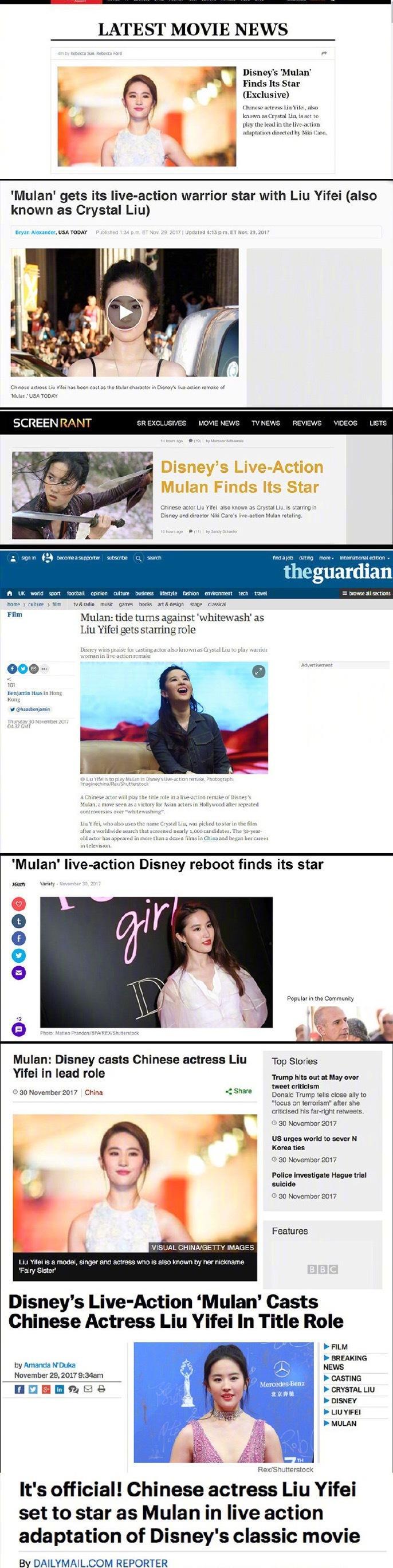 花木兰官宣当日各国头条