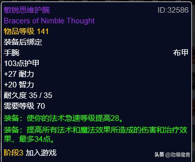 敏锐思维护腕,裁缝制造AH可购买。急速装备。