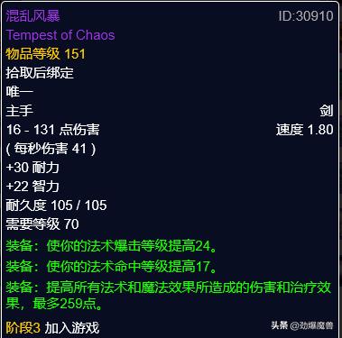 混乱风暴,阿克蒙德掉落。暴击、命中属性。
