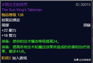 太阳之王的符咒,风暴要塞王子魔珠任务获取。智力属性,暴击和法术伤害加成。