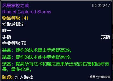 风暴掌控之戒,高阶督军纳因图斯掉落。高暴击,命中戒指。
