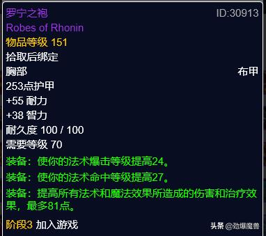 罗宁之袍,阿克蒙德掉落。高命中、高法伤加成。