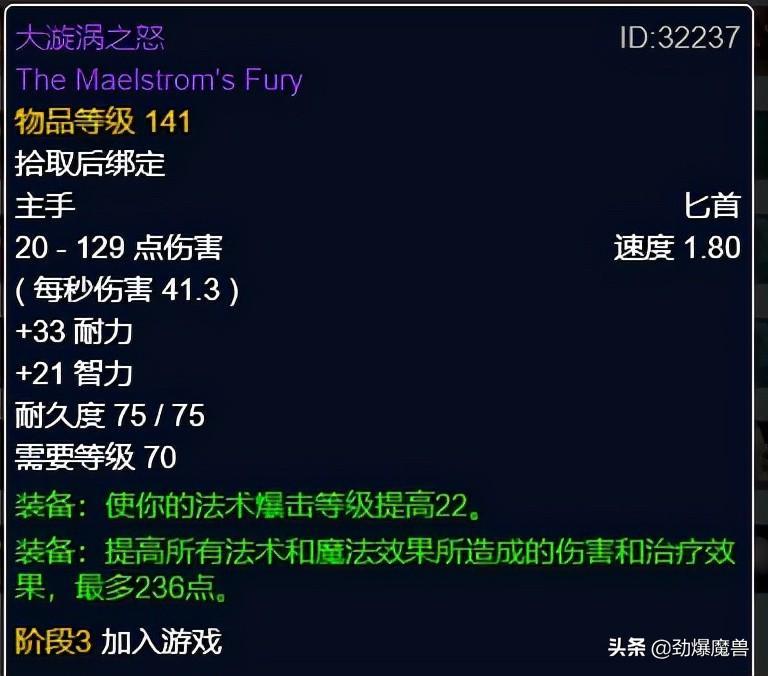 大漩涡之怒,高阶督军纳因图斯掉落。暴击匕首。
