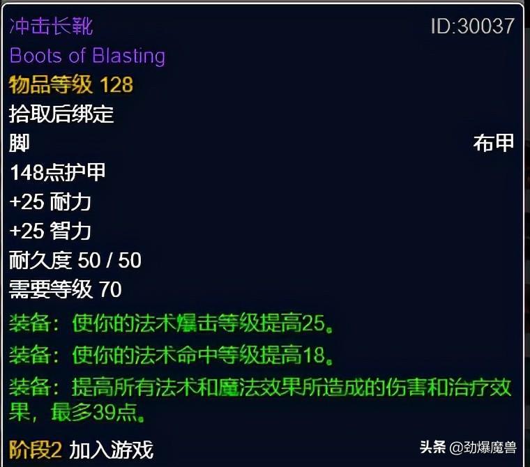 冲击长靴,裁缝制作拾取绑定。暴击、命中属性。