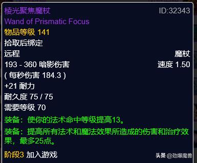 魔杖的选择很多主要还是按照属性做搭配,术士首选是遗忘之星而冷光聚焦魔杖则作为替代品,不缺命中可以考虑艾瑞达湮灭魔杖。