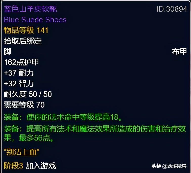 蓝色山羊皮软靴,卡兹加洛掉落。智力、命中属性。