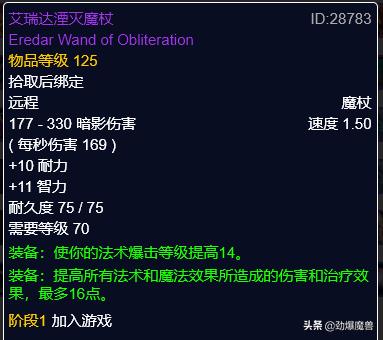 艾瑞达湮灭魔杖,玛瑟里顿掉落。智力、暴击属性。