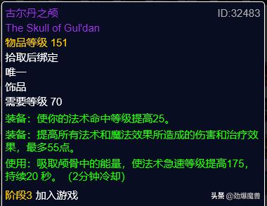 古尔丹之颅,伊利丹掉落。主动急速饰品。