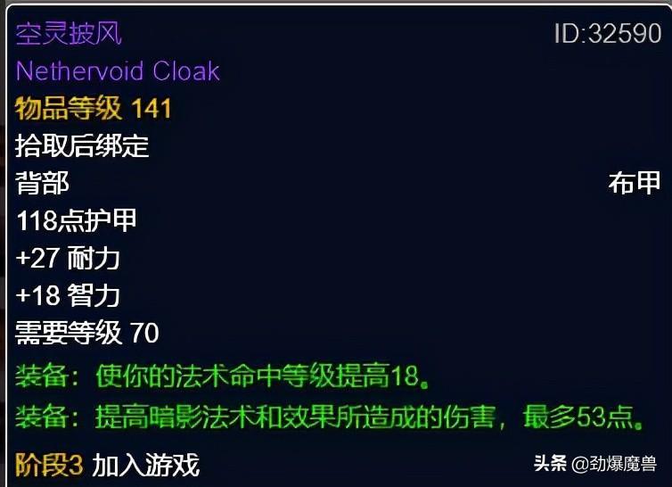 空灵披风,海加尔峰小怪掉落。暗影法术加成。