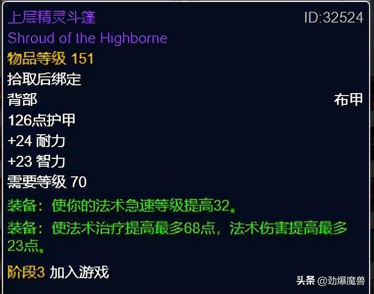 上层精灵斗篷,伊利丹掉落。高智力属性,急速装,治疗装。