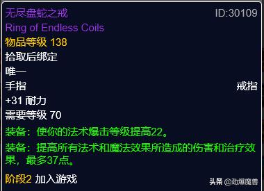 无尽盘蛇之戒,毒蛇神殿瓦丝琪掉落。高暴击和法术伤害。