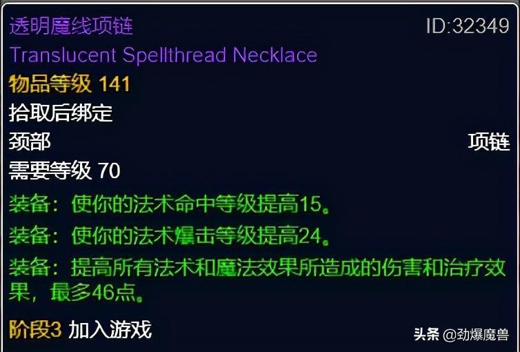 透明魔线项链,灵魂之匣掉落。无基础属性,命中、暴击、法术伤害加成。